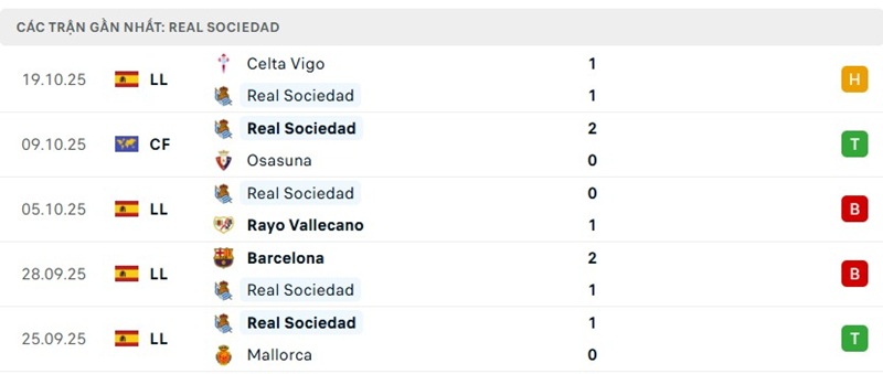 Phong độ Real Sociedad