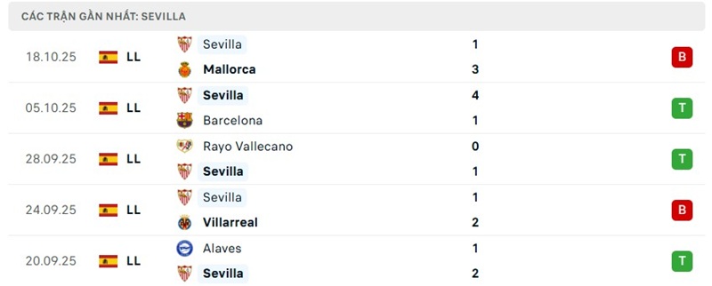Trái ngược hoàn toàn, Sevilla đang trải qua giai đoạn khởi sắc ấn tượng sau khởi đầu chậm chạp. Dưới sự dẫn dắt của HLV Matías Almeyda, đội bóng xứ Andalusia đã tìm lại bản sắc tấn công máu lửa vốn có. Họ gây tiếng vang lớn khi đánh bại Barcelona tới 4-1 ngay trước kỳ nghỉ quốc tế tháng 10, một chiến thắng được coi là bước ngoặt trong mùa giải của “Los Nervionenses”. Dù mới đây Sevilla bất ngờ để thua Mallorca 1-3 trên sân nhà, đó vẫn chỉ là một cú sảy chân nhỏ trong chuỗi phong độ ổn định – khi họ đã thắng ba trong bốn vòng gần nhất, và chỉ thua 2 trong sáu trận gần đây. Với phong độ ấy, Sevilla hiện đứng thứ 9 trên bảng xếp hạng, bằng điểm với Atletico Madrid và chỉ kém vị trí thứ 4 của Villarreal ba điểm – một sự hồi sinh mạnh mẽ nếu nhớ rằng mùa trước họ phải vật lộn trụ hạng, đứng tận thứ 17, chỉ hơn nhóm xuống hạng đúng hai điểm.