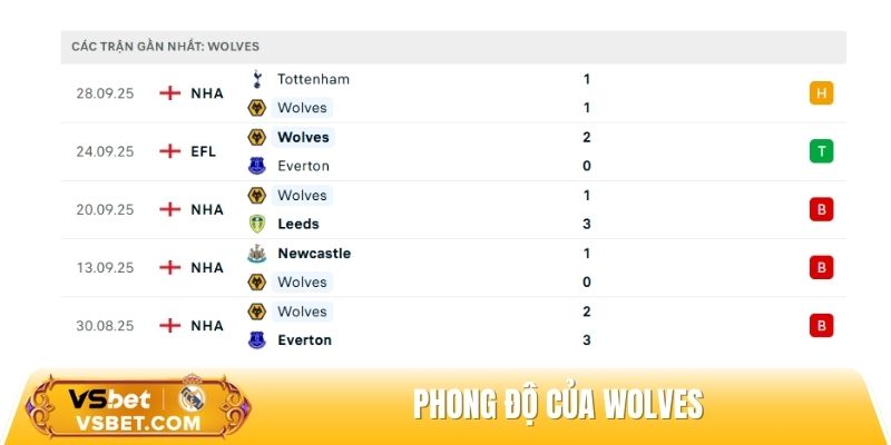 Mặc dù đã kiếm về một điểm ở lần ra quân gần nhất với đối thủ Tottenham chơi đầy hưng phấn, tuy nhiên, thành tích của Wolves vẫn rất tệ gần đây. Theo thống kê cho thấy, sau 5 trận trước đó, Bầy Sói chỉ giành được 1 chiến thắng, 1 trận hòa và nhận tới 3 thất bại. Tính đến trước vòng 7, Wolves vẫn dậm chân ở cuối bảng, khi là đội duy nhất chưa biết mùi chiến thắng.
