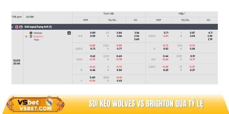 Soi kèo Wolves vs Brighton qua tỷ lệ